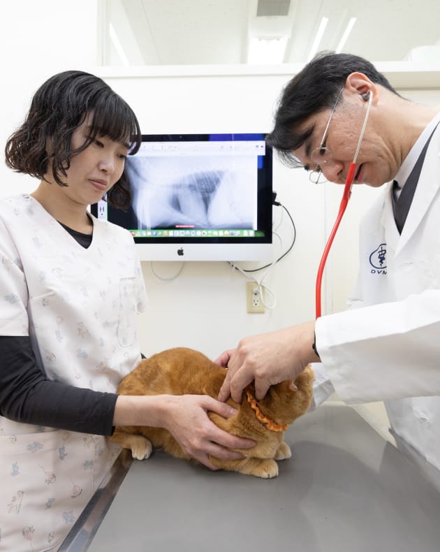 皮膚や耳の状態を丁寧に確認し、全身の健康状態もあわせてチェックします。