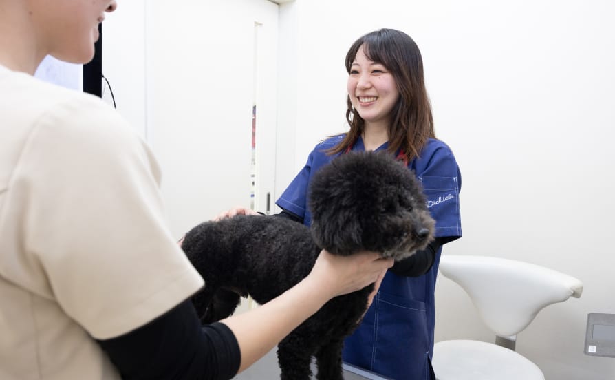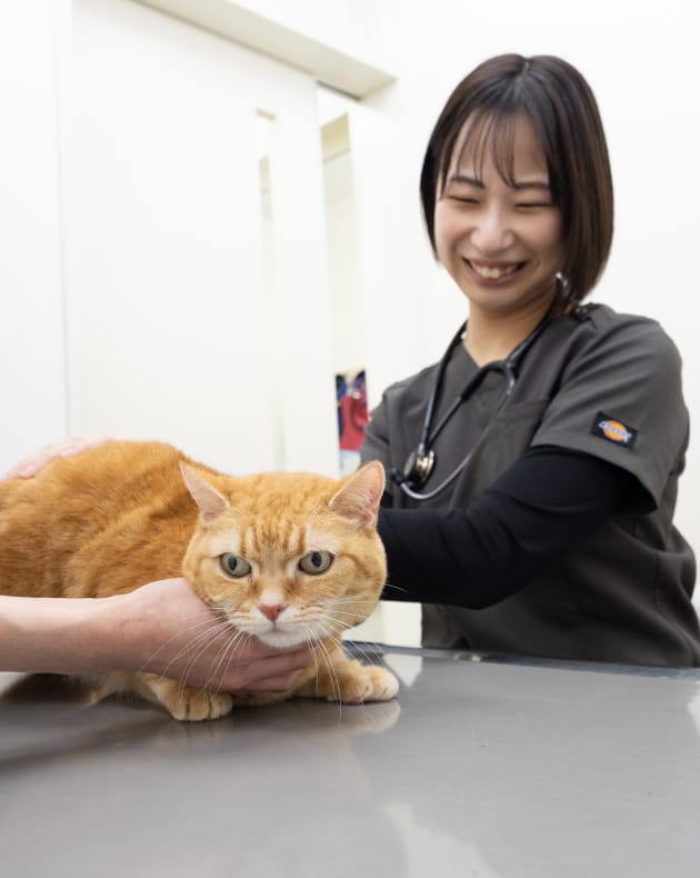 しこりの位置や状態を確認し、全身の健康状態もあわせてチェックします。
